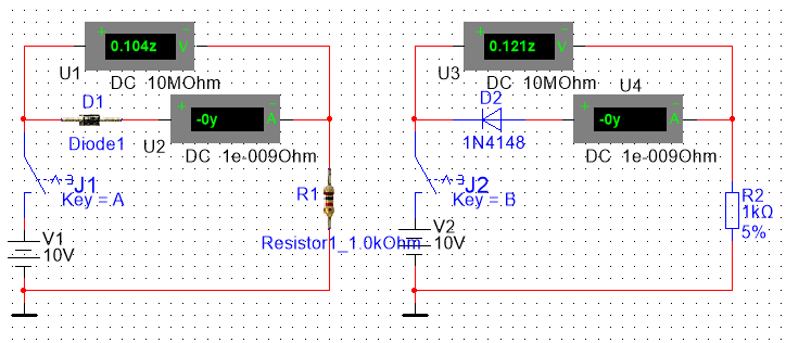 二極管加反向電壓的仿真解析二極管加反向電壓的Multisim仿真及分析斷開A、B開關(guān)閉合A、B開關(guān)先通過A、B鍵使J1、J2兩個(gè)開關(guān)打開。打開電源開