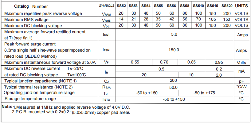 SS520肖特基二極管,5A 200V,SMA SMB SMC封裝參數(shù)規(guī)格書(shū)SS520是貼片肖特基二極管,5A 200V,SS520封裝有SMA,SMB,SMC多種封裝,其參數(shù)一致,封